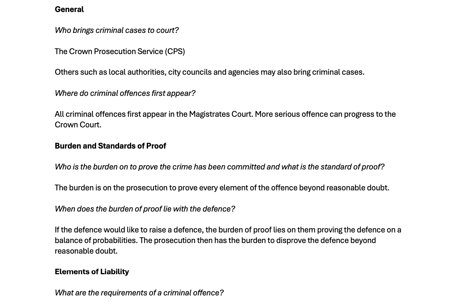 Covers procedure, evidence, and core offences — everything from arrest to trial — broken down into clear Q&A to help you apply the law with confidence in SQE2.